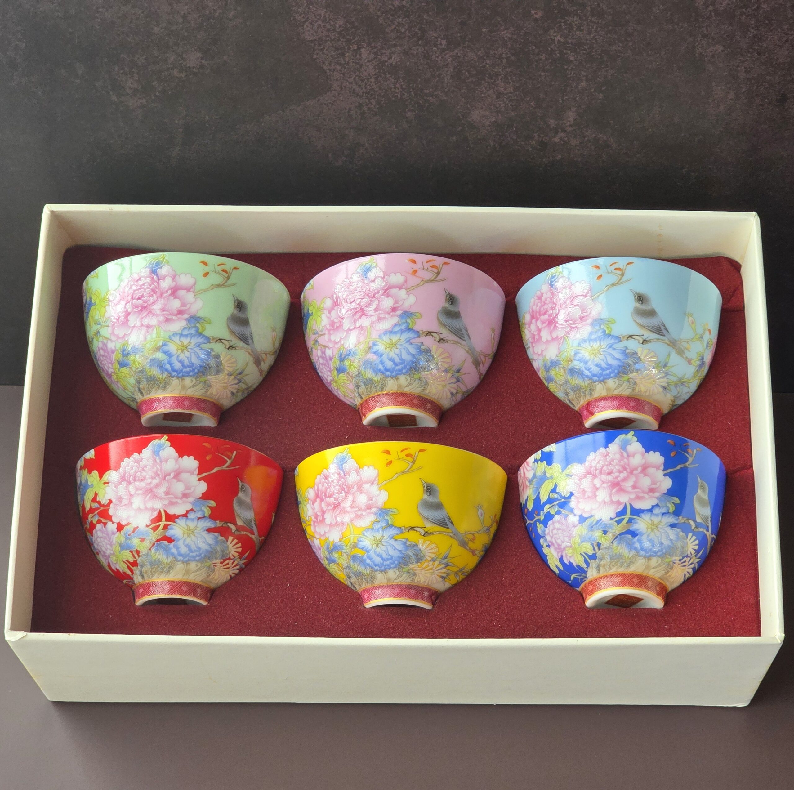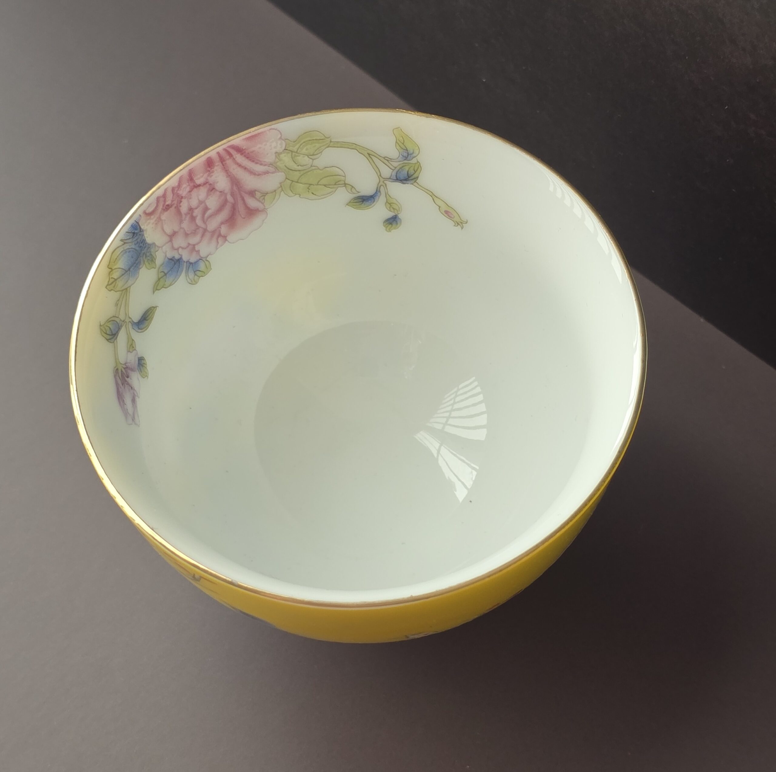 景徳鎮 牡丹鳥飲杯 黄(1個)
