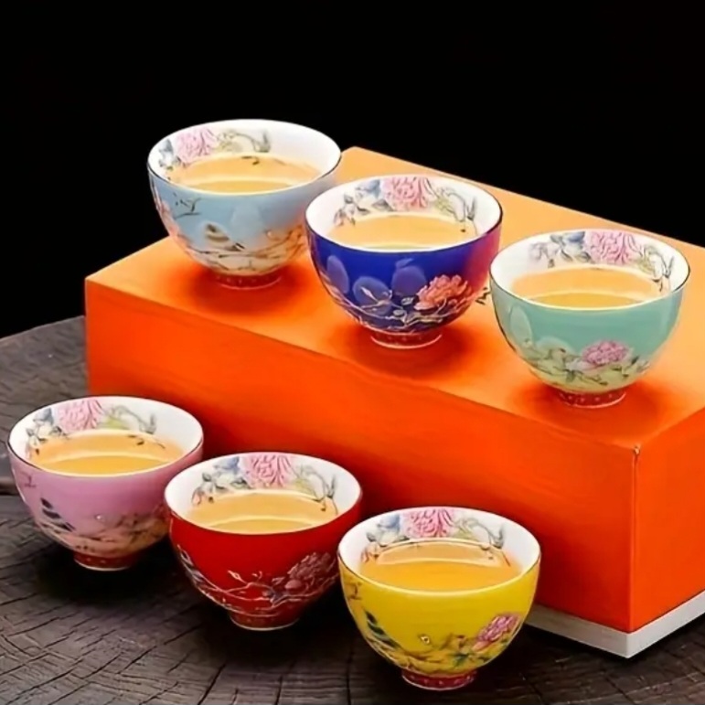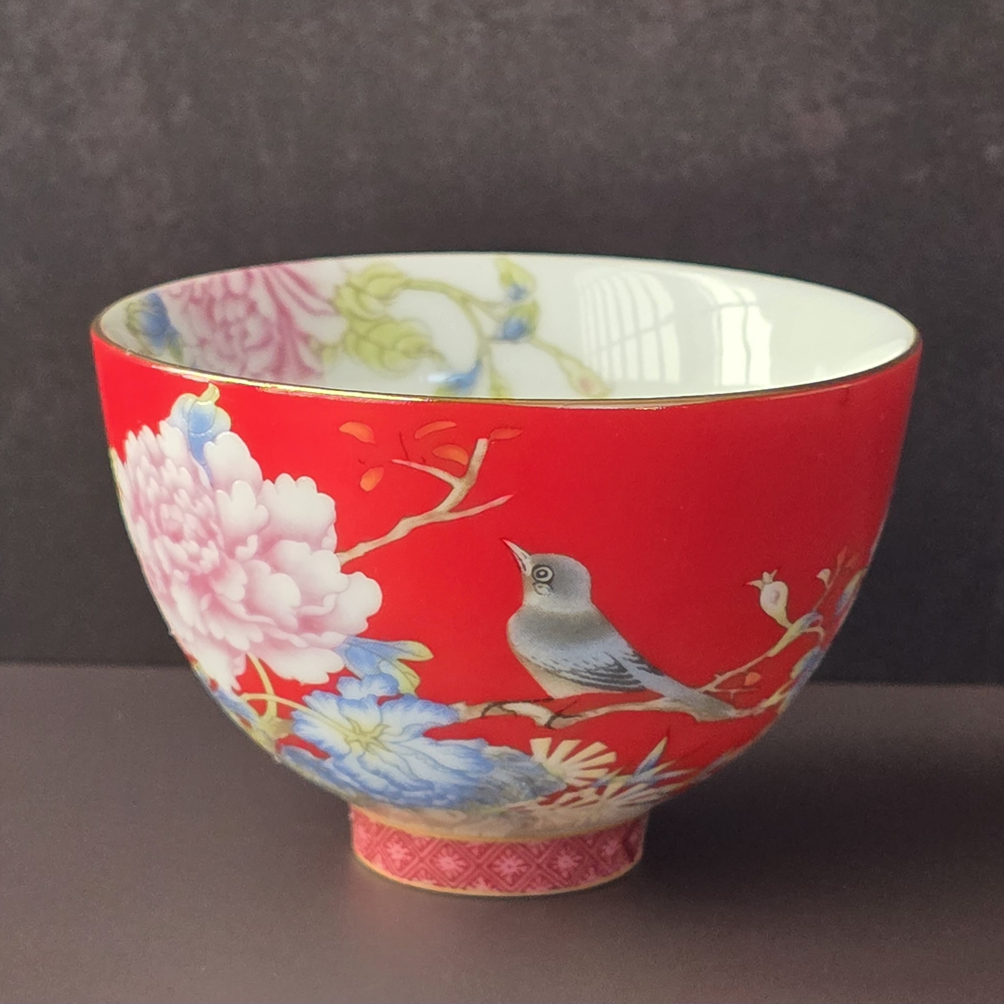 再入荷『ギフト箱入』景徳鎮 牡丹鳥飲杯(6個セット)