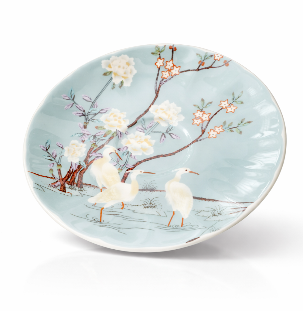 【数量限定】吉兆白鷺BoneChinaカップ&ソーサー アイスブルー